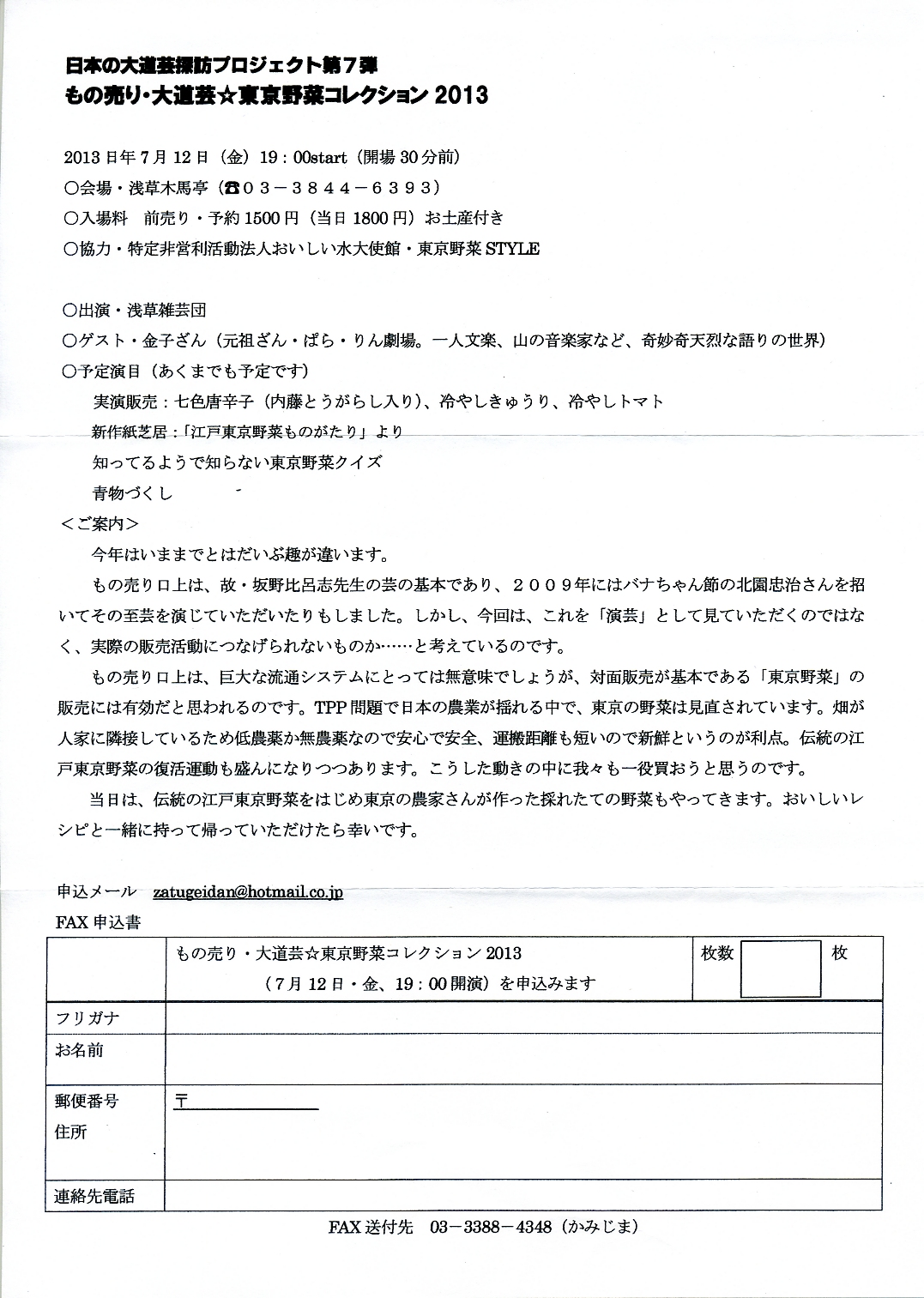 お知らせ「もの売り・大道芸☆東京野菜コレクション2013」