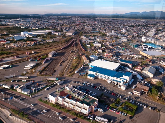 県立博物館で少々時間をオーバーしつつ、次は秋田臨海鉄道が丸見えという、秋田港がある土崎地区のポートタワー・セリオンの展望室に昇りました。